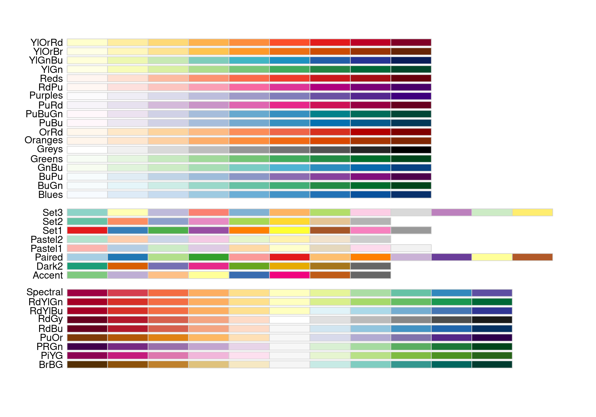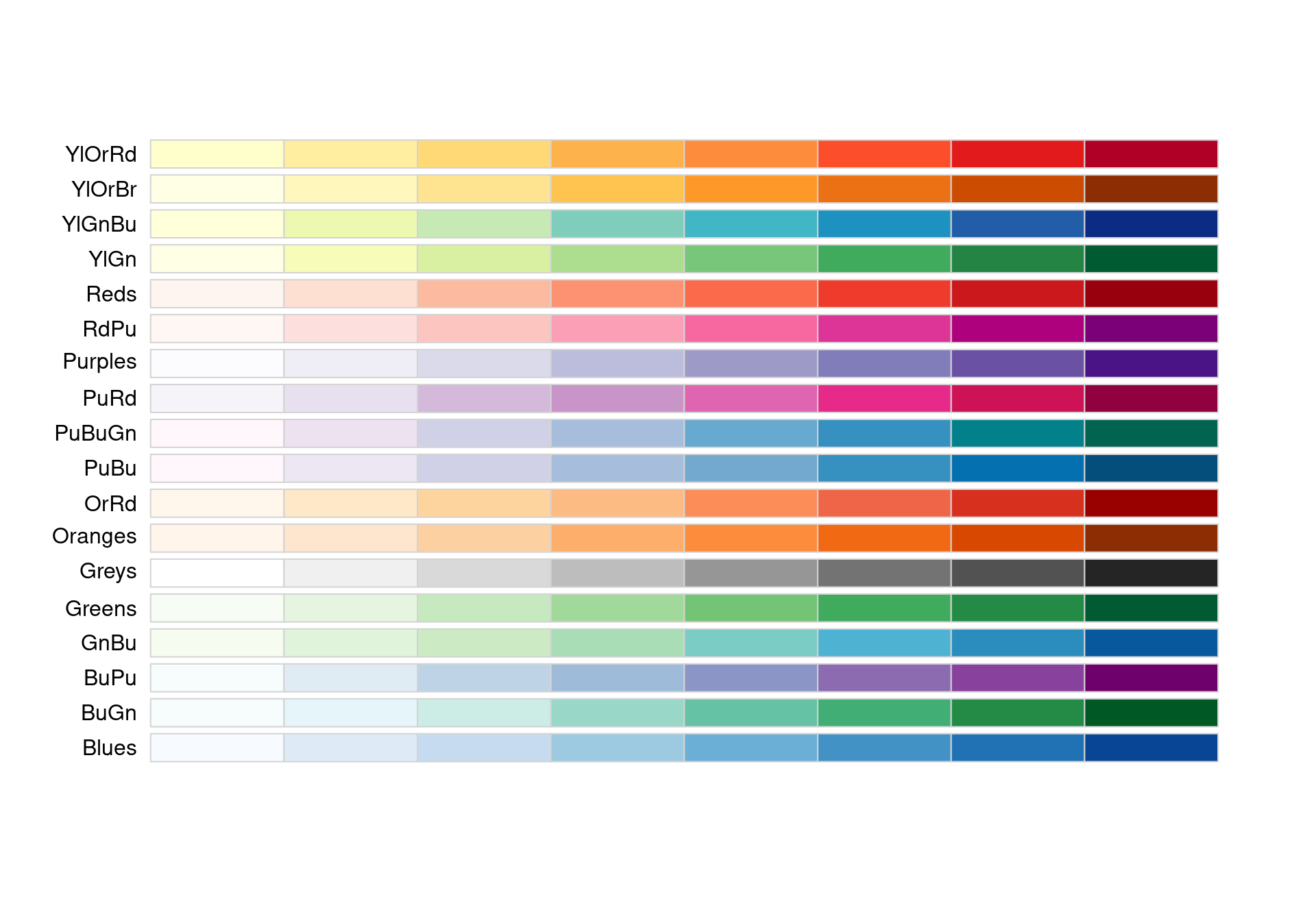 - Skale sekwencyjne mogą się opierać na odcieniach jednego koloru lub na odcieniach wielu kolorów (np. od ciemnoczerwonego do jasnożółtego)