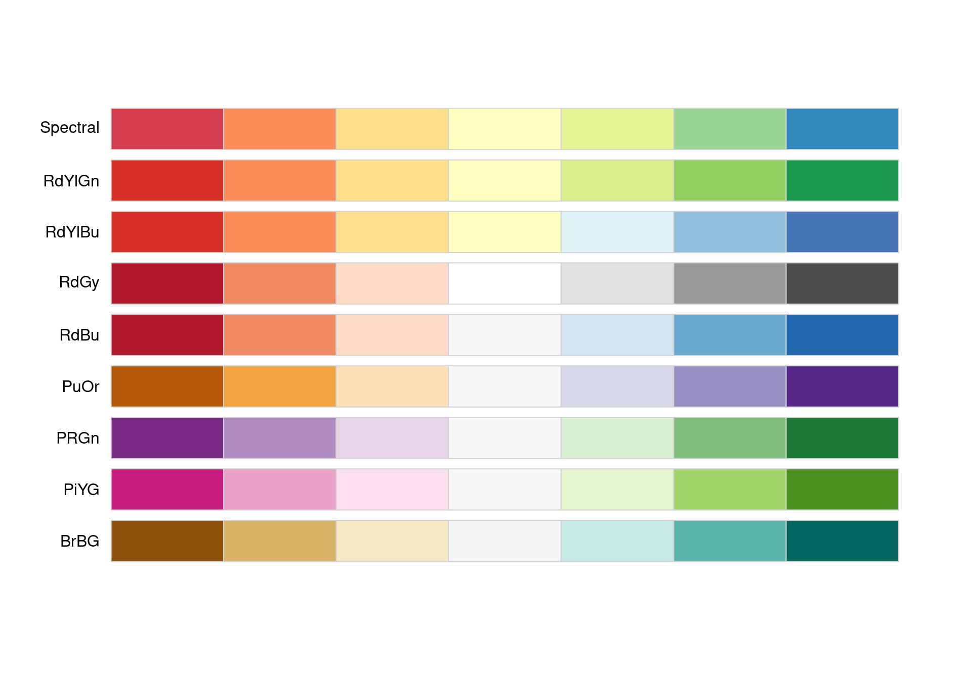 - Skalę rozbieżną można uznać za 2 skale sekwencyjne połączone we wspólnym punkcie środkowym, który zazwyczaj reprezentowany jest przez jasny, neutralny kolor.