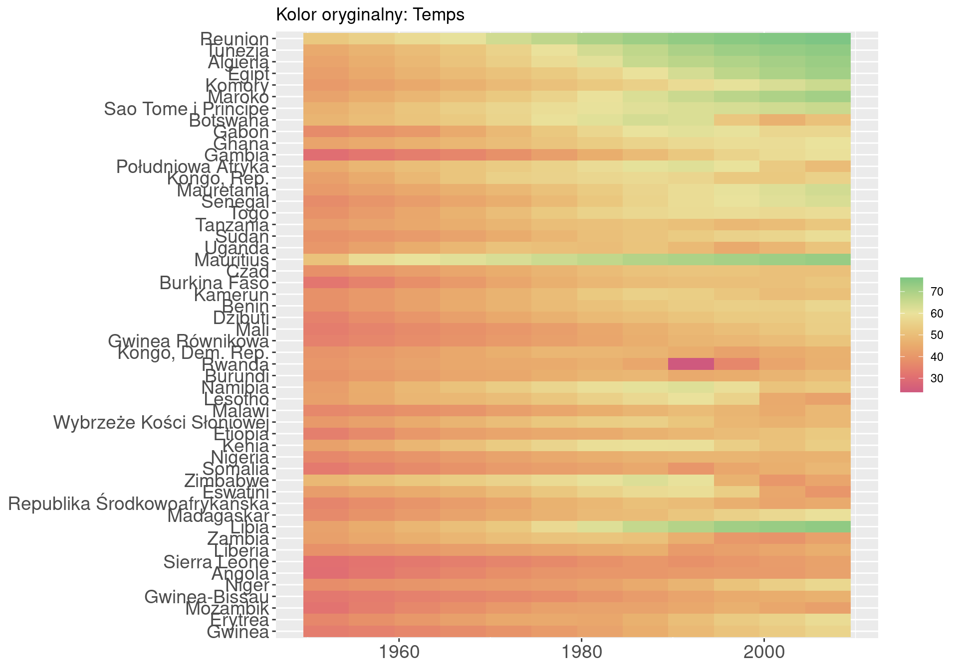 - Które wartości danych są reprezentowane przez konkretne kolory? (określane za pomocą skali kolorystycznej)
