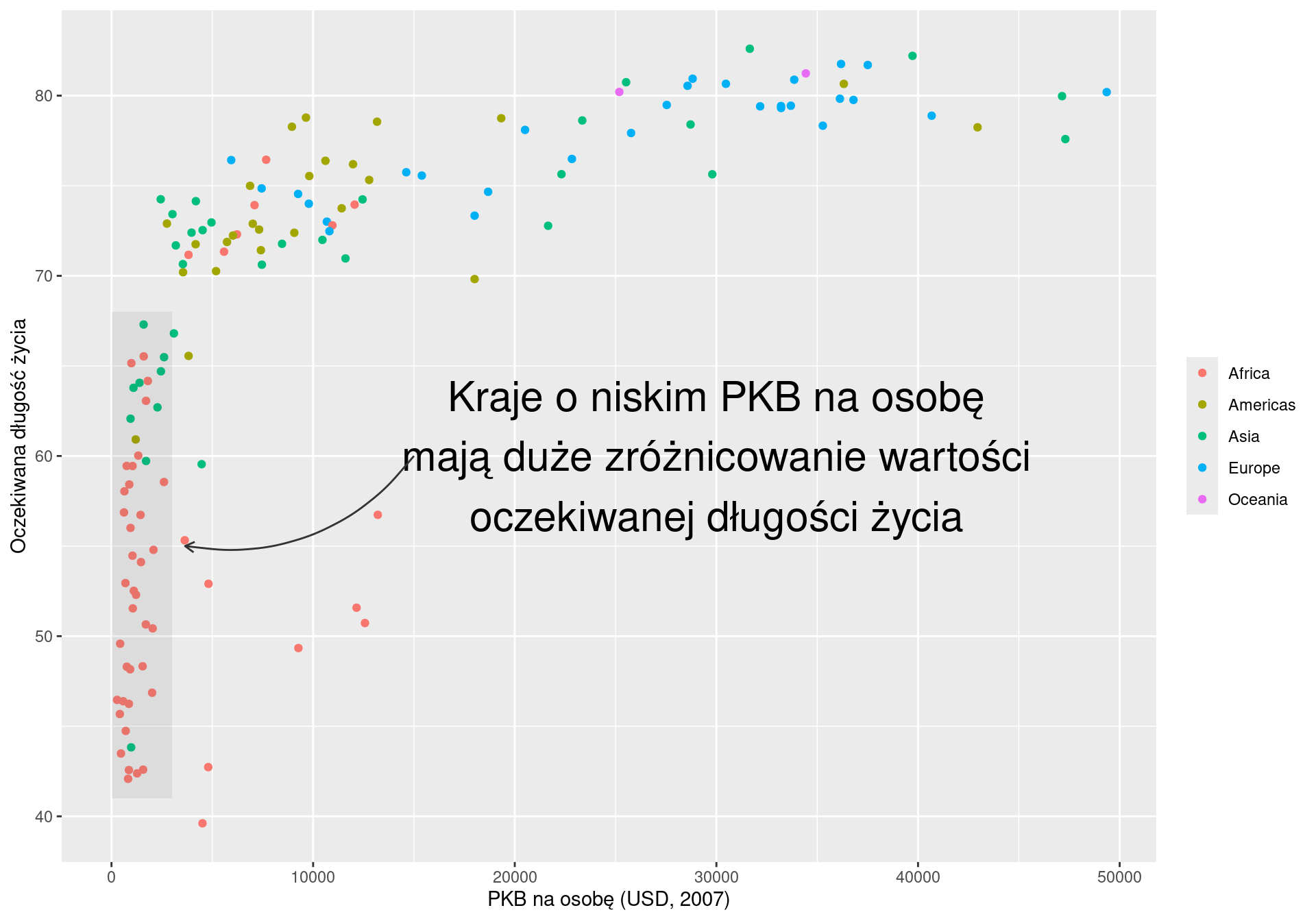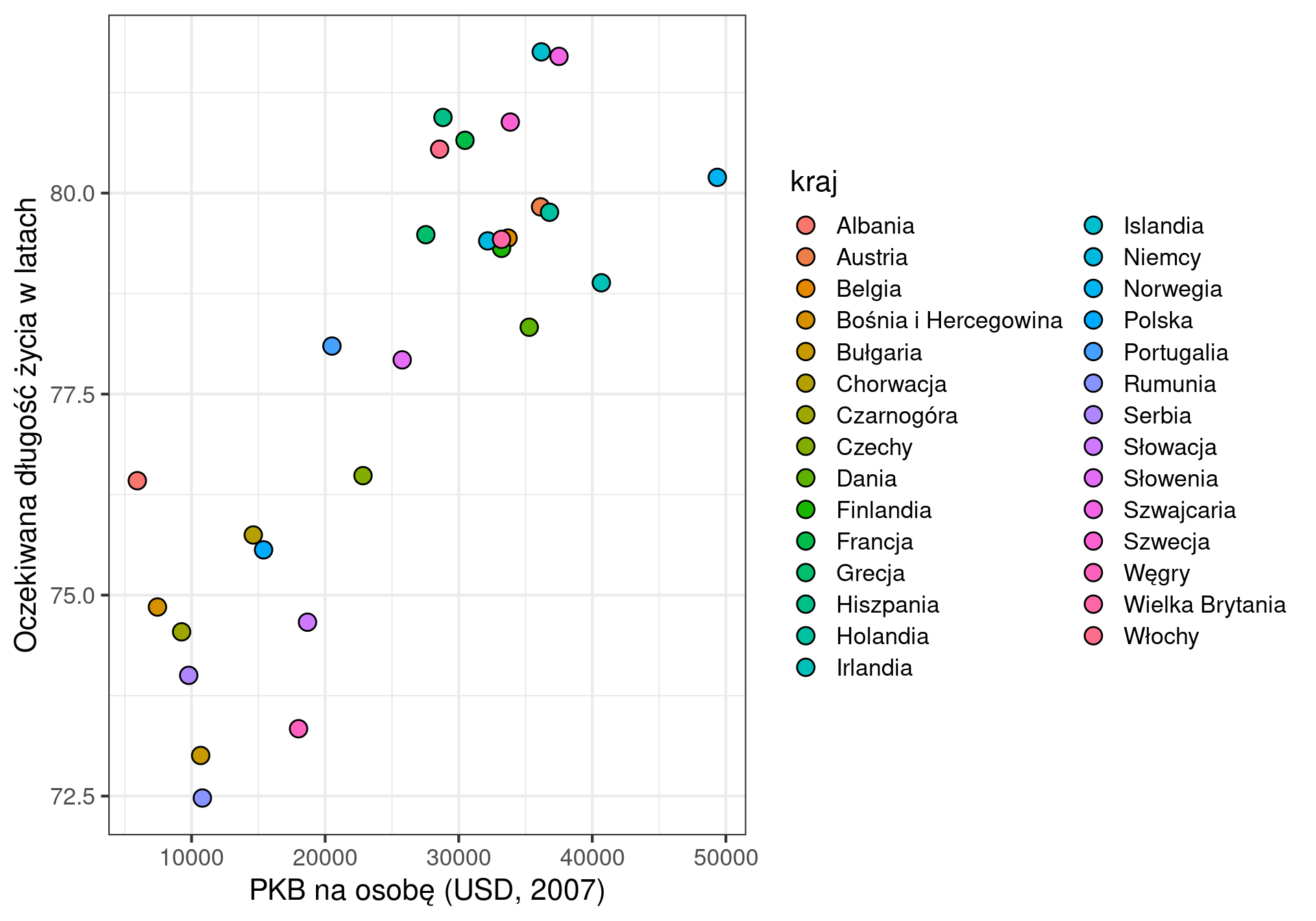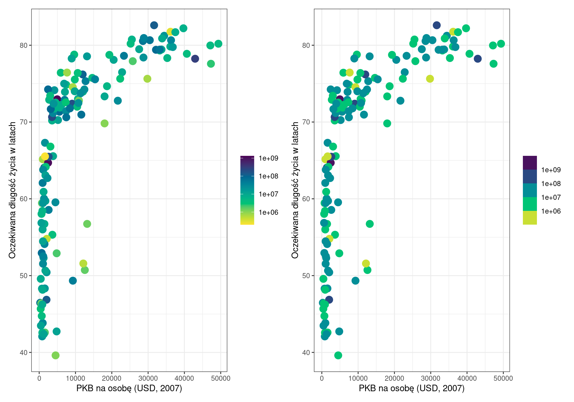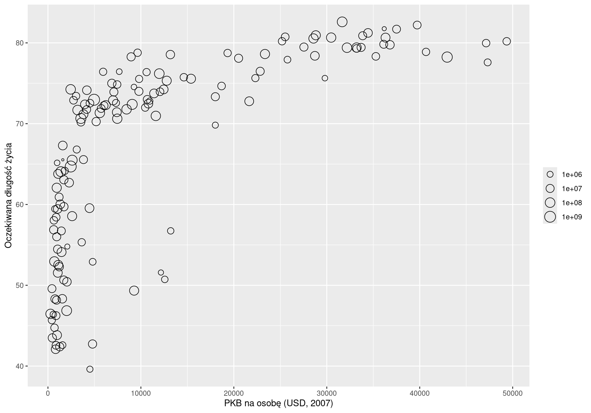 - Zróżnicowanie wielkości punktów względem zmiennej ilościowej