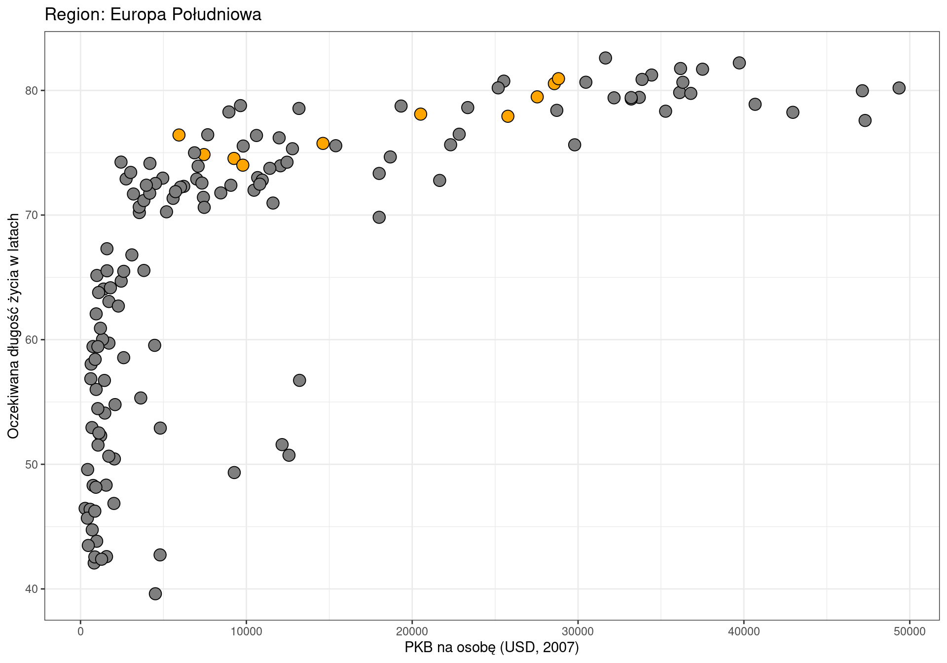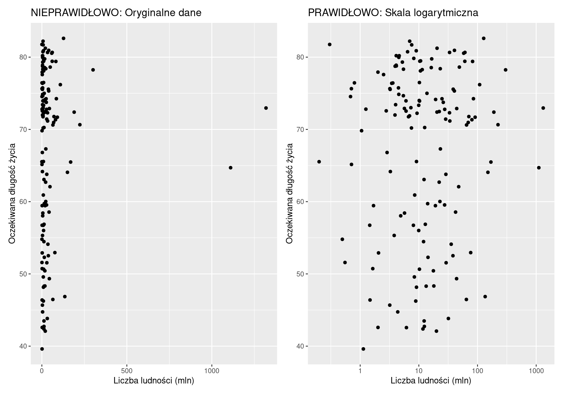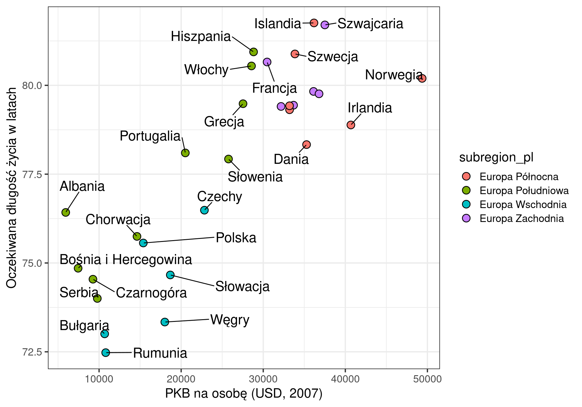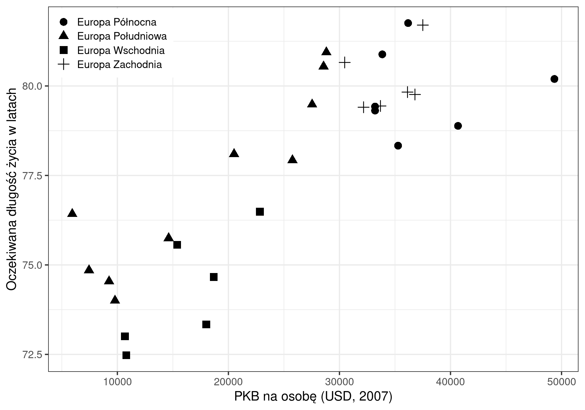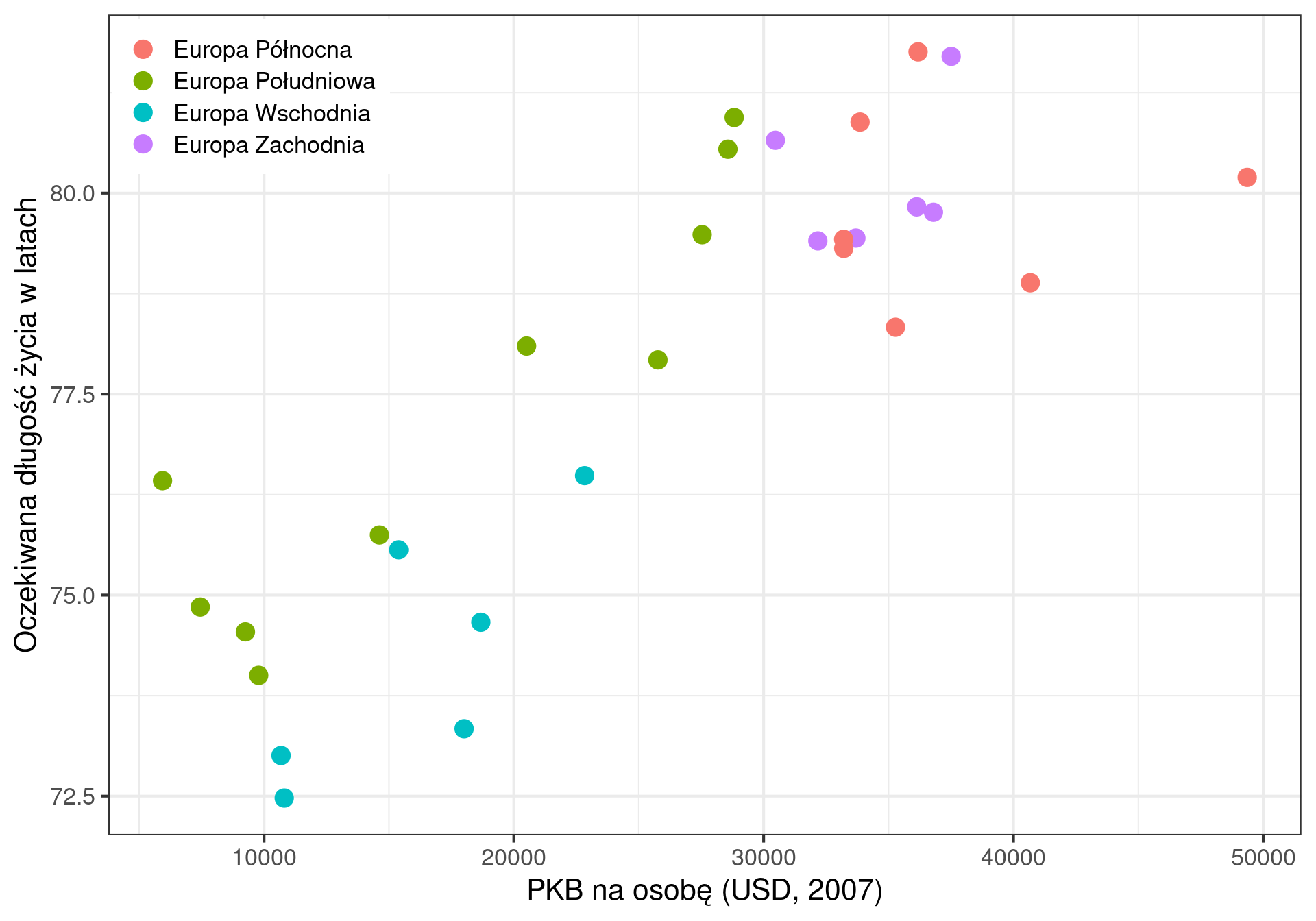 - Zróżnicowanie wielkości punktów względem zmiennej ilościowej