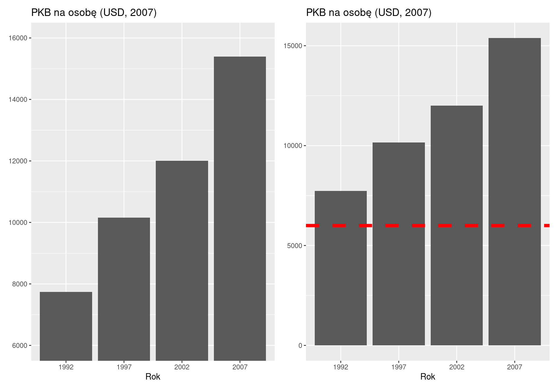 - W wykresie słupkowym oś musi zaczynać się od 0.